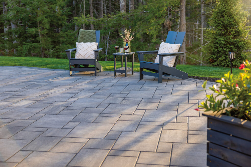 Placement of pavers into various patterns creates visual texture that augments the aesthetic characteristics of the shape, size and color. When choosing a pattern, it is important to know some have better interlock because the lines of the joints are interrupted at shorter intervals. This helps keep the pattern tightly woven and helps prevent them from spreading apart over time or when subject to traffic such as passenger vehicles on driveways.