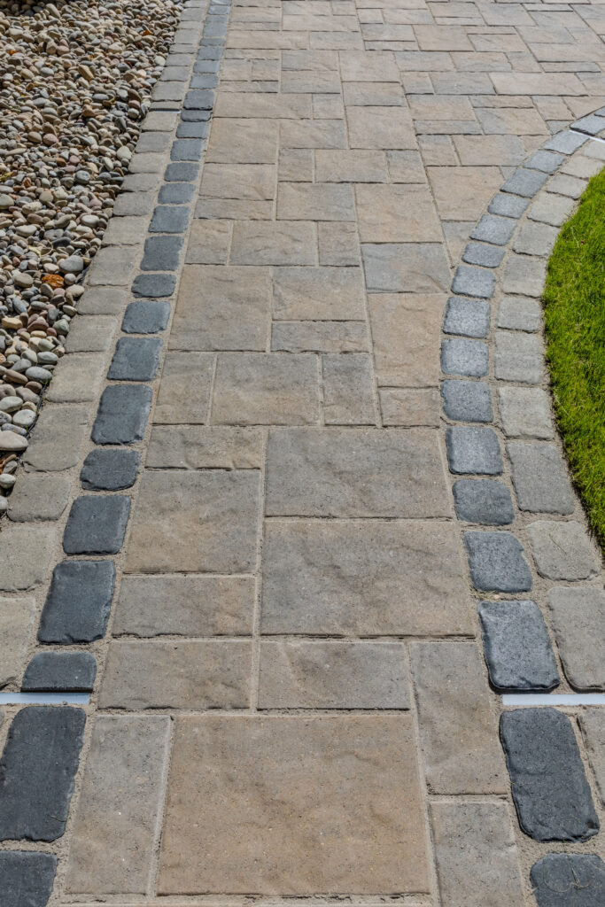 Comprised as a 4-piece set, Portsmouth Cobble features the charm and look of time-honored paving stones enhanced with Color 4D Technology. Each shape is subtly contoured and rolled along the edges while the robust spacers molded into the sides adjoin the units to form a firm, stable interlocked pavement. Portsmouth Cobble can be used as a stand-alone paver for customers who desire the look of a classic cobble walkway or driveway, or as the perfect accent to other paver styles when used as decorative banding and border courses.