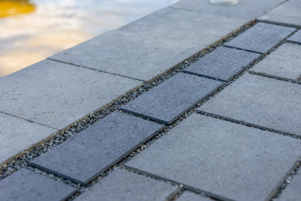 Placement of pavers into various patterns creates visual texture that augments the aesthetic characteristics of the shape, size and color. When choosing a pattern, it is important to know some have better interlock because the lines of the joints are interrupted at shorter intervals. This helps keep the pattern tightly woven and helps prevent them from spreading apart over time or when subject to traffic such as passenger vehicles on driveways.