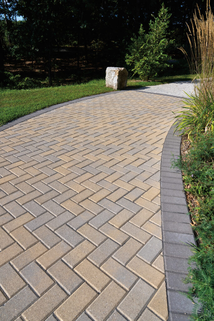 While running bonds and basket weaves may be used for residential driveways, herringbone patterns provide the greatest degree of interlock. Stack bond patterns should only be utilized for applications limited to pedestrian traffic.