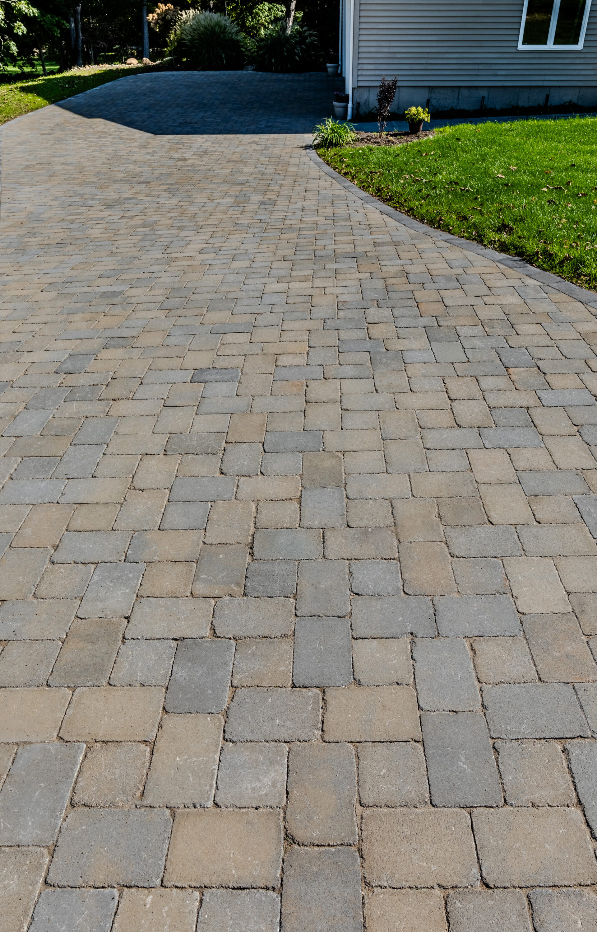 While running bonds and basket weaves may be used for residential driveways, herringbone patterns provide the greatest degree of interlock. Stack bond patterns should only be utilized for applications limited to pedestrian traffic.